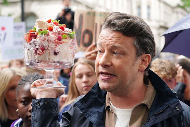 Jamie Oliver has threatened to stage an Eton Mess protest over the Governments U-turn on its anti-obesity strategy telling Boris Johnson he has 36 hours to correct his mistake. Jamie Oliver has threatened to stage an Eton Mess protest over the Governments U-turn on its anti-obesity strategy telling Boris Johnson he has 36 hours to correct his mistake.